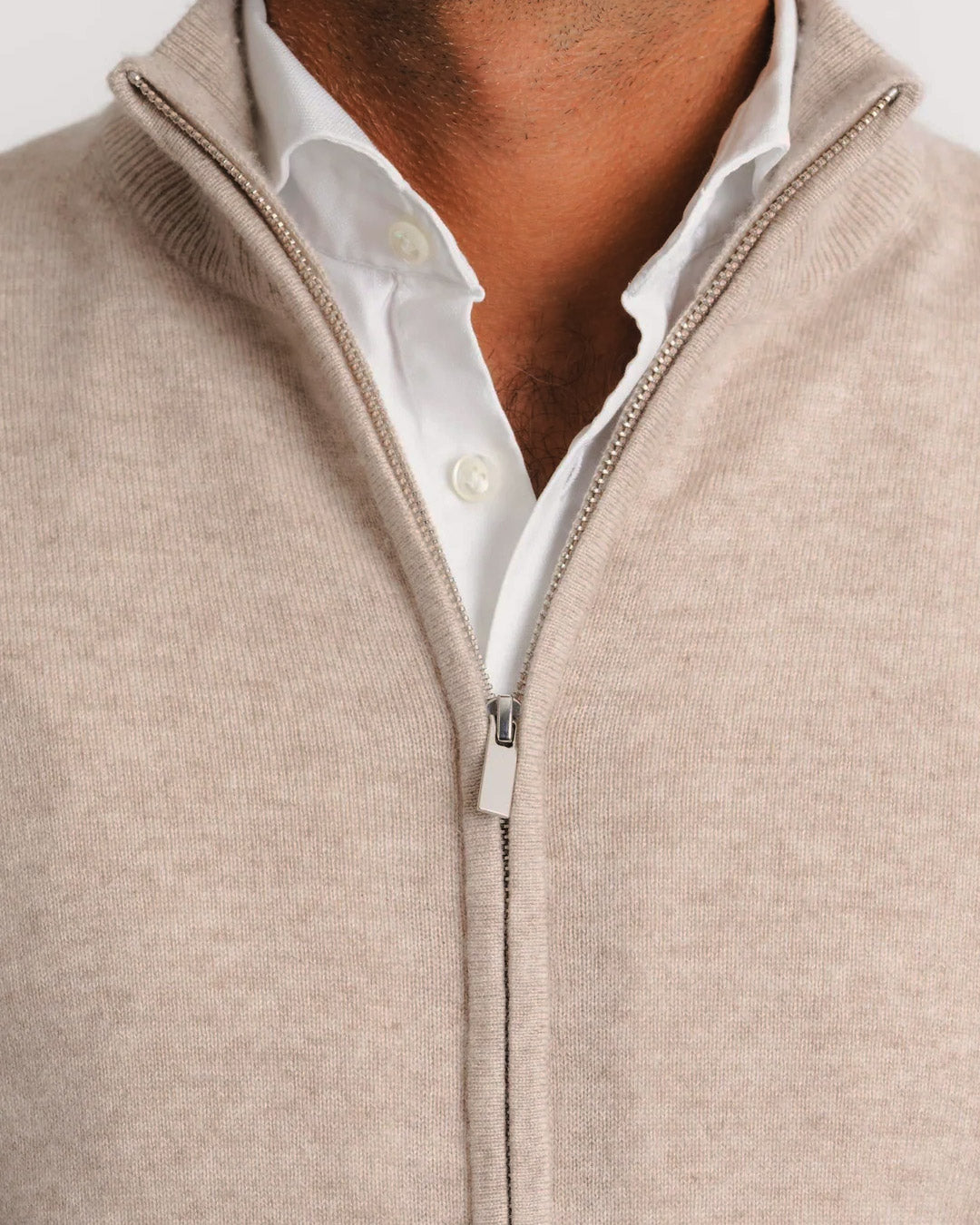 Bež merino kašmirski prsluk s patentnim zatvaračem