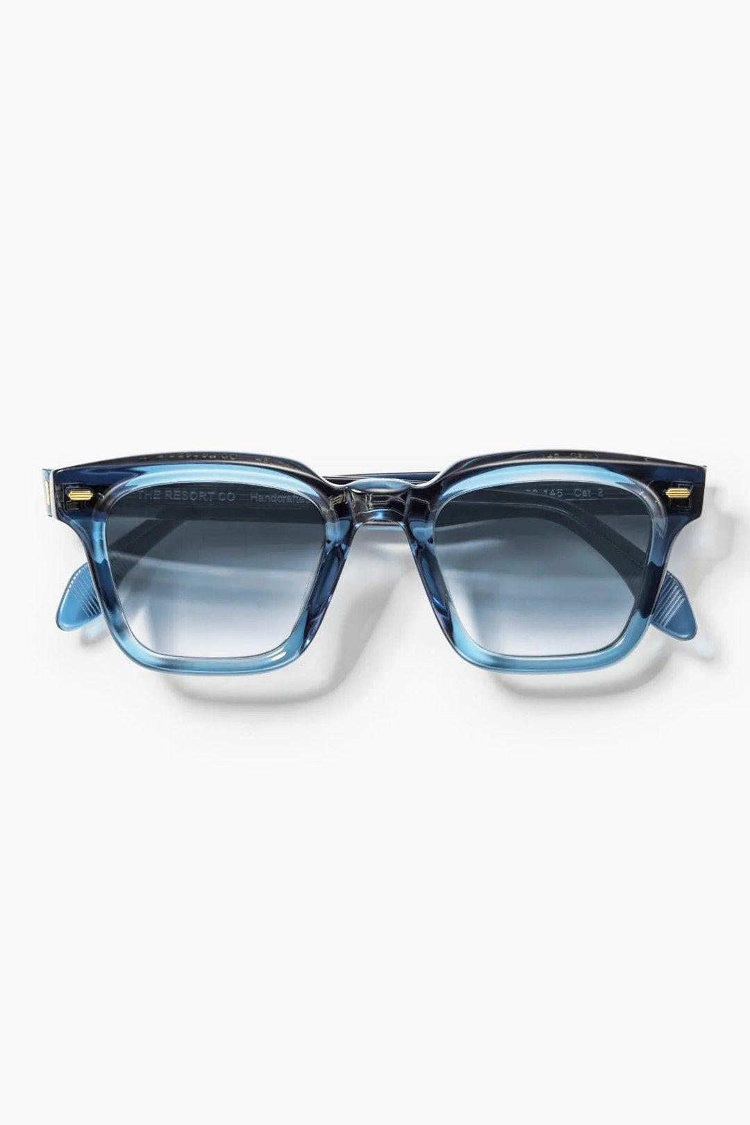 - Model RC019 - Handcrafted in Cadore, Italy - Using Italian acetate, lenses and hardware - Features diamond rivets and ribbed temple tips - Gradient smoky brown lenses - Cat 2 - Width 140 mm - Eye 47 mm, Bridge 26 mm, Temple 145 mm - Anti-reflective lenses with UV protection - Five barrel hinges with real rivets - Comfortable key hole bridge with acetate nose pads - Comes with The Resort Co sunglass case - Unisex