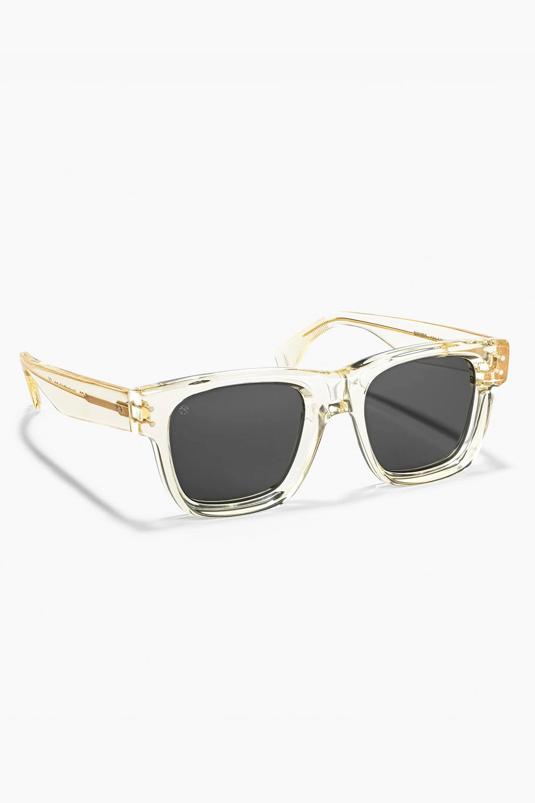 These bold The Resort Co frames are made in Italy using premium lightweight acetate and antireflective lenses. This style features translucent blonde acetate and dark grey lenses.