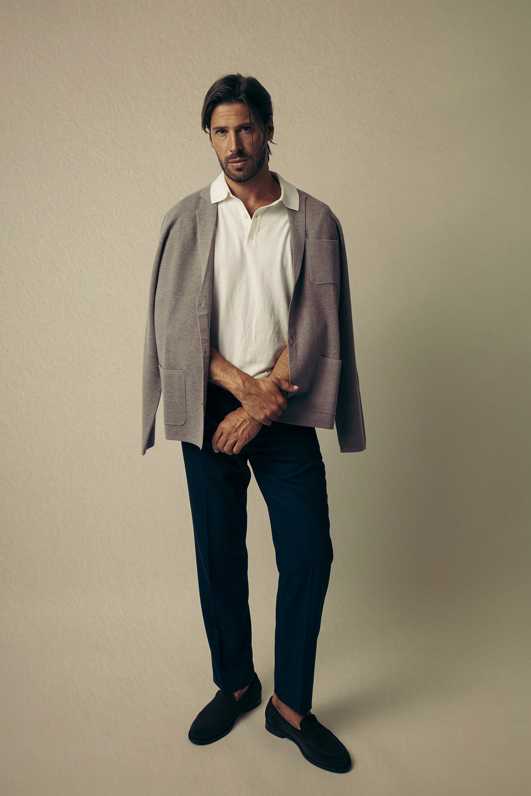 - Model BA018 - 100% Cashfeel merino vuna - Milano pletivo za strukturu i mekoću - Reveri sa zarezom - Zatvaranje sa 3 dugmeta - 3 našivena džepa - Dugi rukavi - Regularni ravni kroj - Dvoslojno (uvijanje dvaju niti tkanine zajedno u jednu jednu pređu) - 14 gauge (12 uboda pređe/inč)