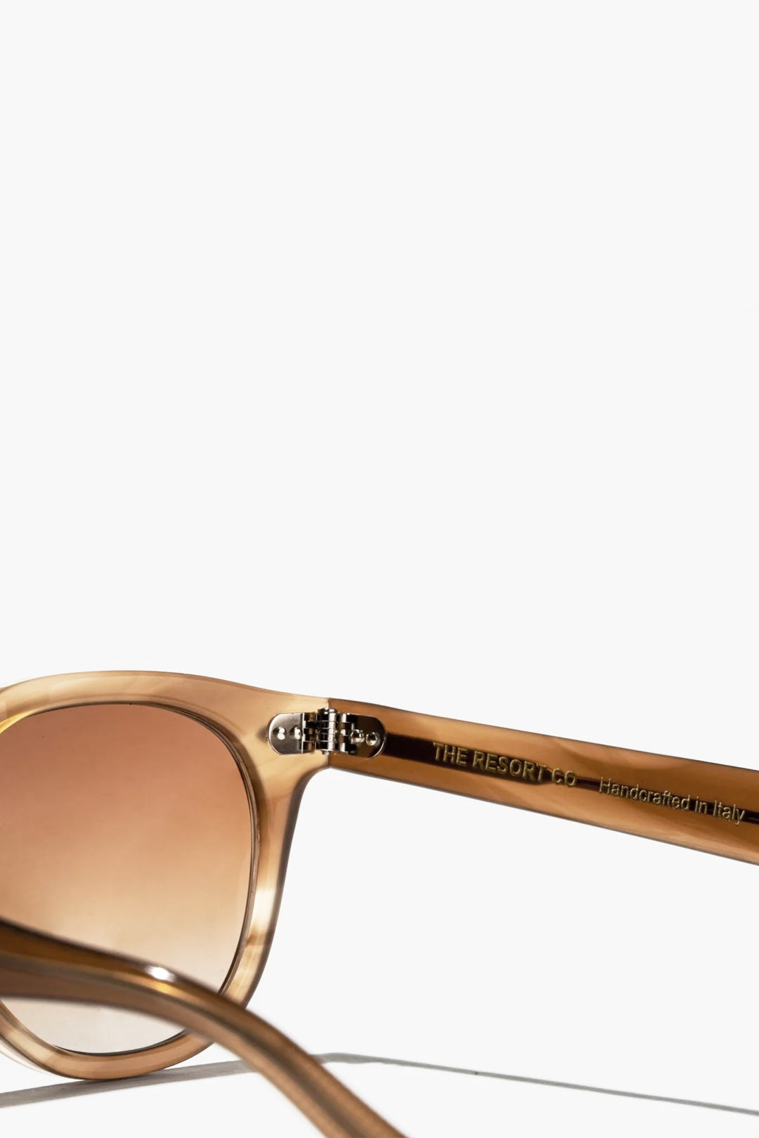 These The Resort Co sunglasses have been made in Italy from a lightweight, acetate fitted with matching gradient lenses. Hacienda has been part of the collection since day one. Its well-proportioned D-shaped frame and keyhole nose bridge offer a comfortable fit with a considered design. A model that continues to hold its own, season after season.