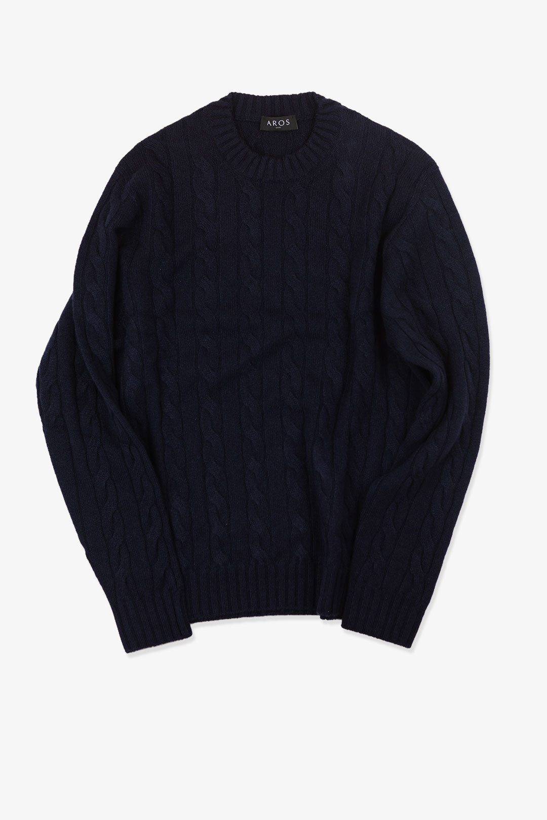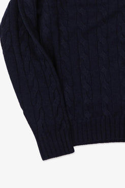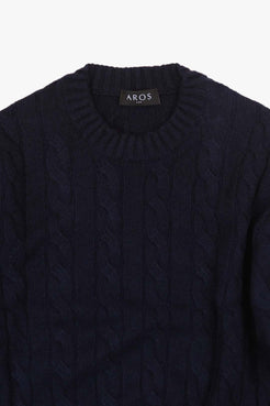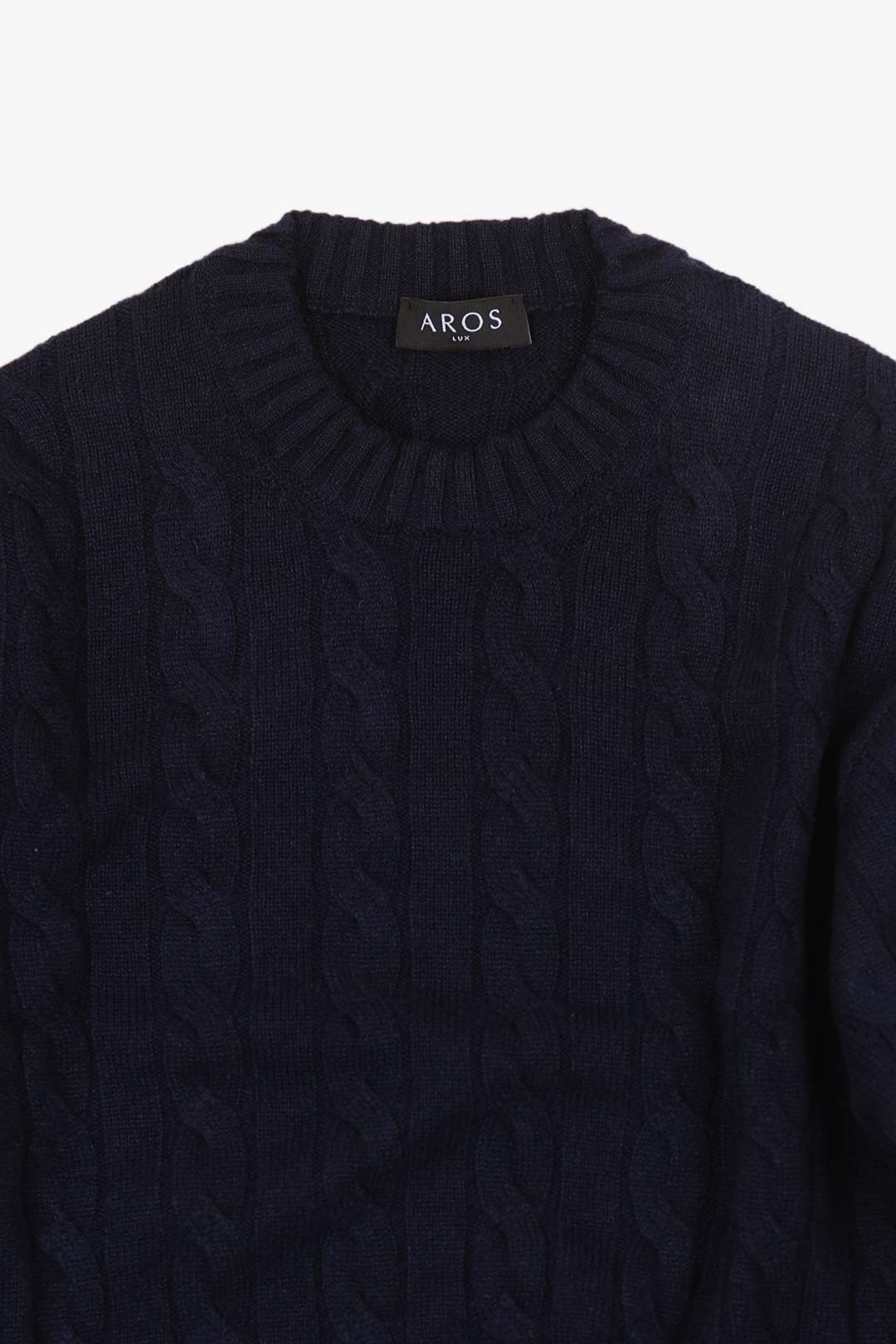 Tamnoplavi džemper od čistog kašmira s uzorkom pletenice