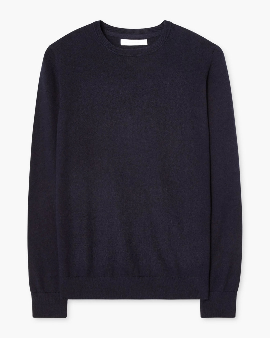 Tamnoplavi pamučni kašmirski džemper s okruglim izrezom
