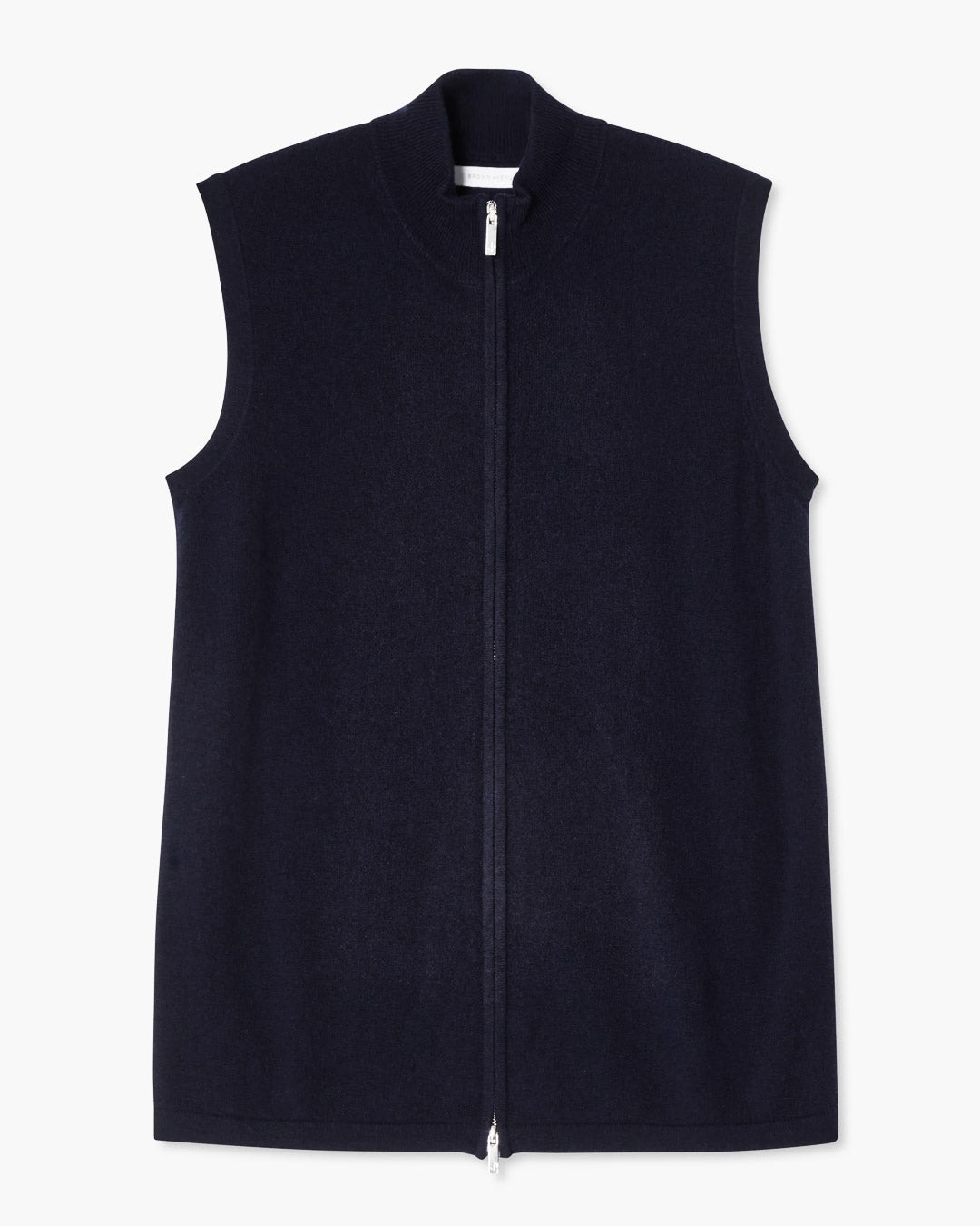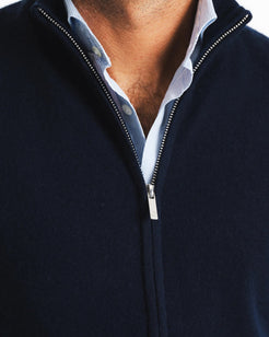 Tamnoplavi merino kašmirski prsluk s patentnim zatvaračem