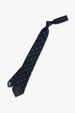 Navy Blue is a perennial classic. White flowers lend a quiet elegance. Crafted in pure silk with an untipped grenadin...