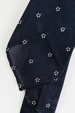 Navy White Flower Silk Grenadine Tie