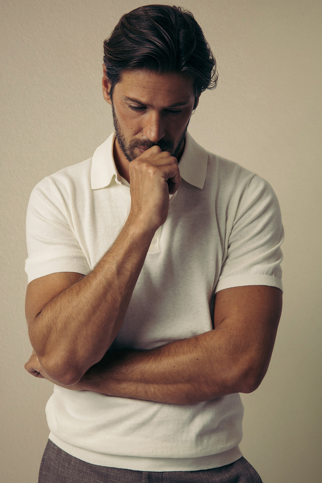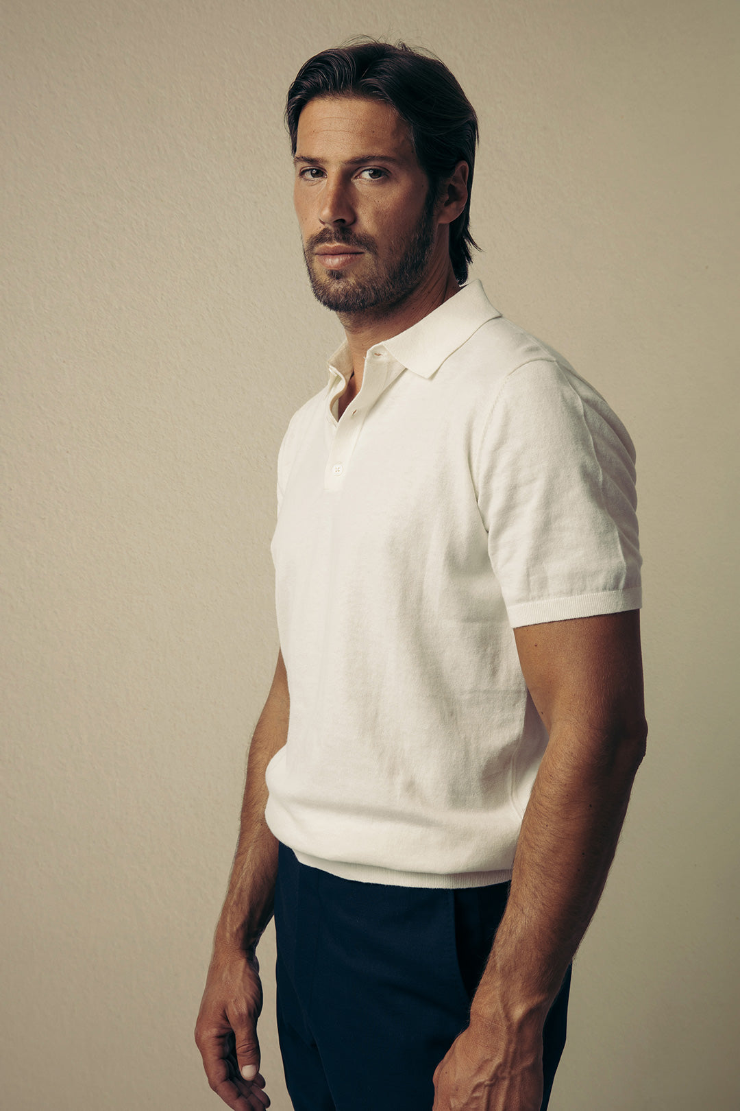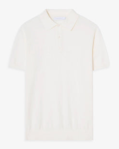 Prirodno bijela pamučna kašmirska pletena polo majica