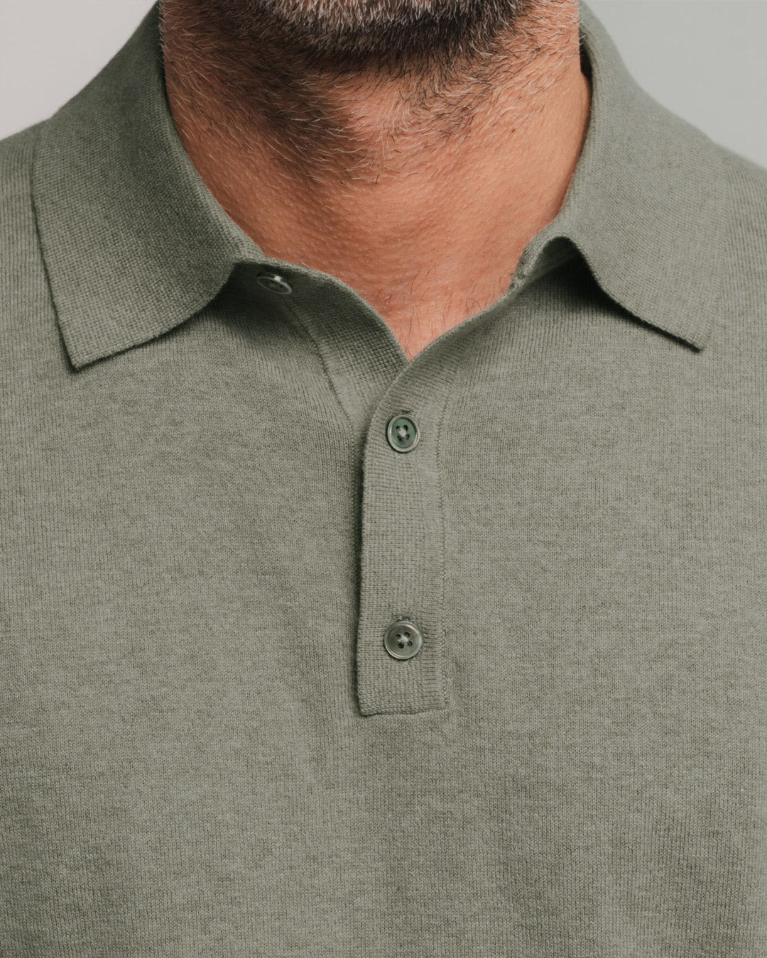 Maslinasto zelena pamučna kašmirska pletena polo majica