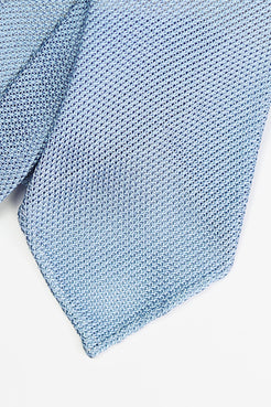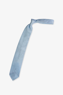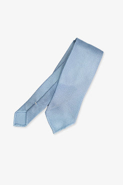 Woven from the lightest grenadine silk in a subtle sky blue tone. Untipped for a softer drape, with hand-rolled edges—crafted entirely by hand in Italy. A quiet statement of elegance.