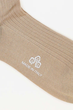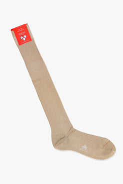 Beige Cotton Ribbed Over The Calf Socks