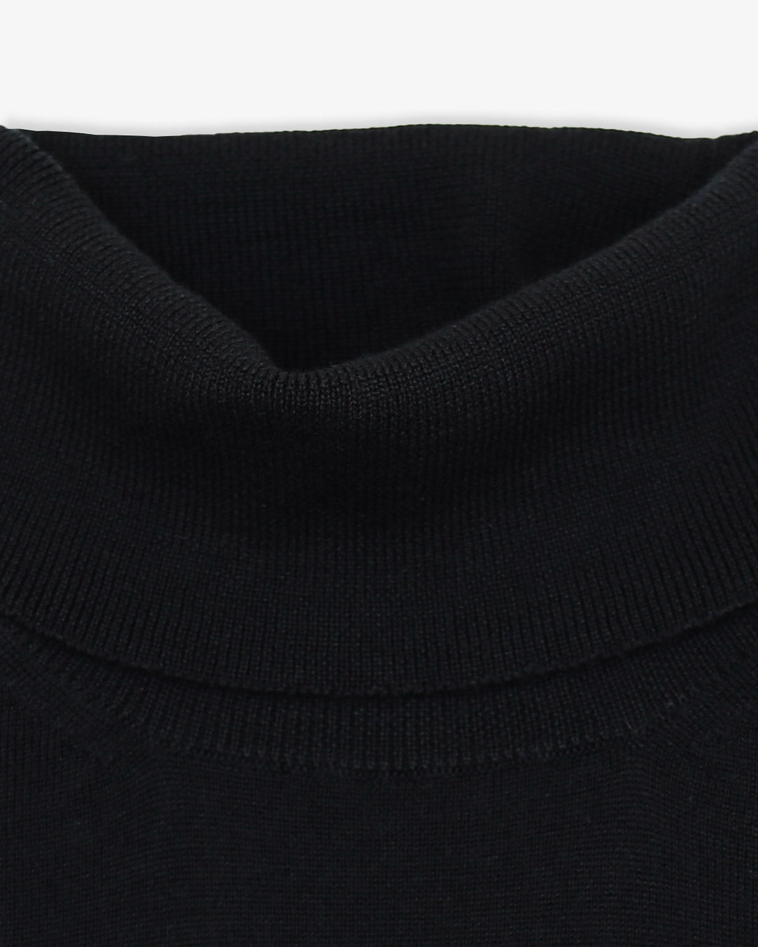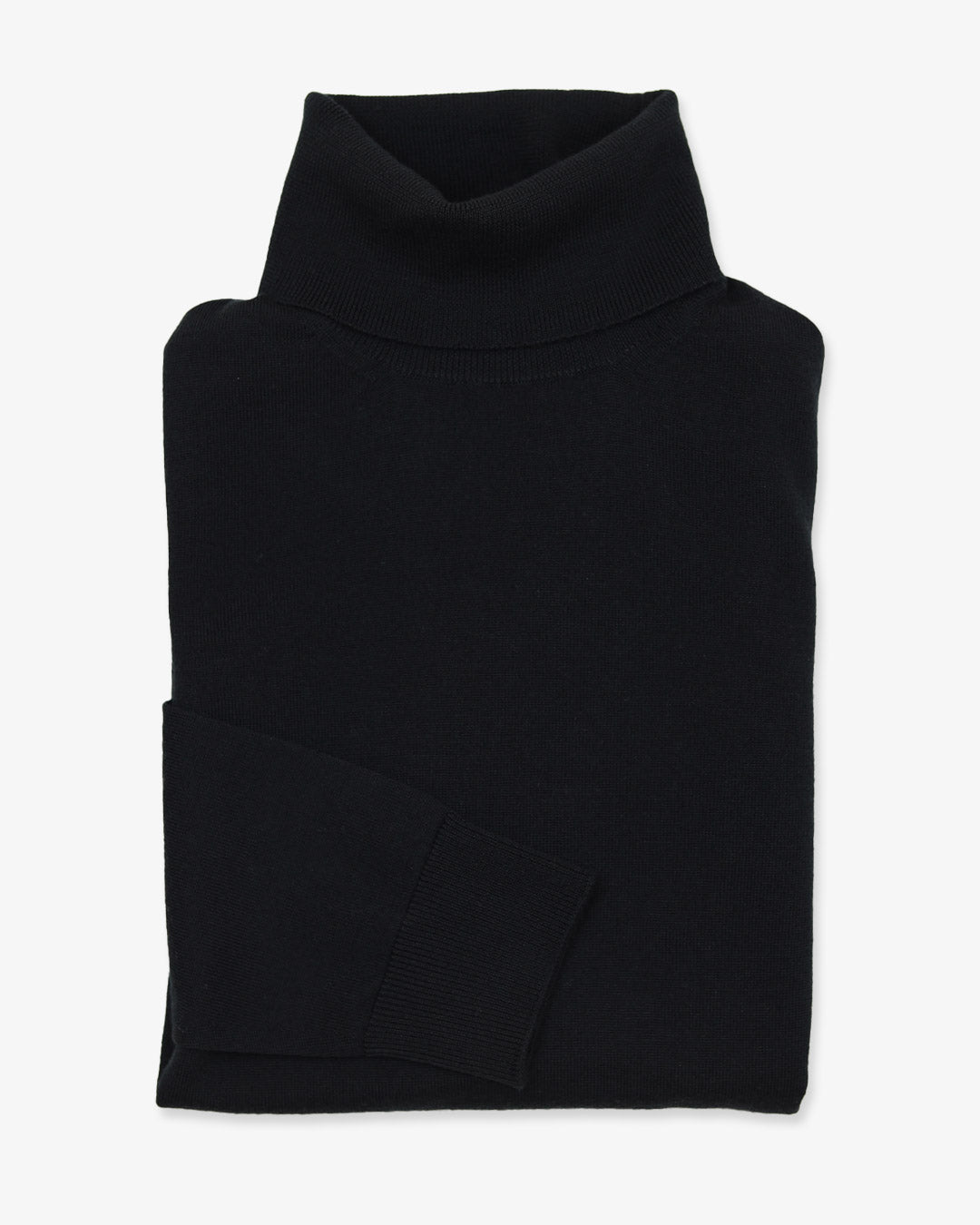 - Model A034 - 100% extra-fine merino wool - Turtleneck collar - Long sleeves - Ribbed endings - Regular fit - 2-ply (twisting two strands of fabric together into one single yarn) - 12 gauge (12 stitches of yarn/inch)