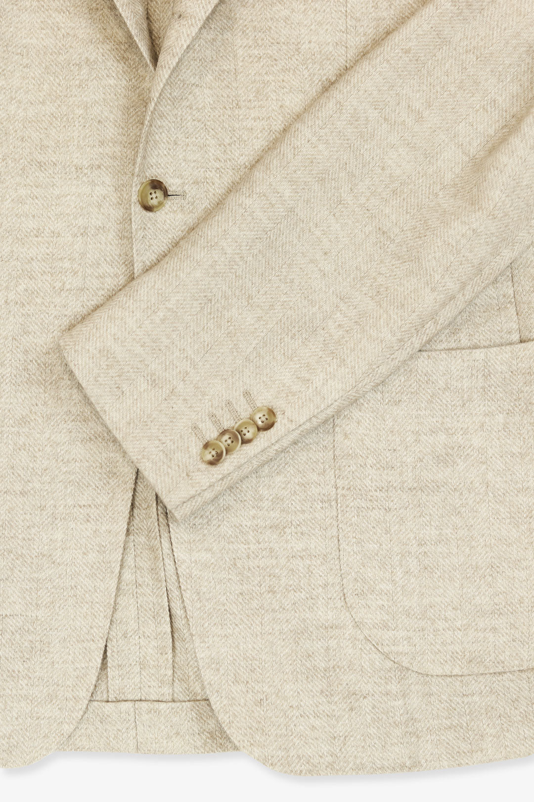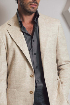 Crafted from a rich Italian wool–alpaca blend by Carnet, this piece is woven in a soft herringbone and brushed for a gently blurred texture. The back is half-lined, allowing it to slip effortlessly over knitwear or a brushed cotton shirt. Casual patch pockets and our signature low gorge bring a relaxed, quietly sculpted elegance.