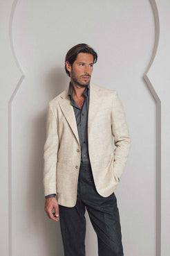 - Model A009 -56% wool, 33% alpaca, 9% polyamide - Unconstructed - 2.5 buttons single breasted closure - Standard width notch lapel - Unconstructed shoulder - Welted chest pocket - Patch pockets - 4 kissing buttons with closed buttonholes - 2 side vents - Half-lined - 2 mm pick stitching (AMF) - Four inner pockets - Fits true to size - take your normal size - Model is 189cm, measures 102cm in the chest and 80cm in the waist and is wearing a size 52