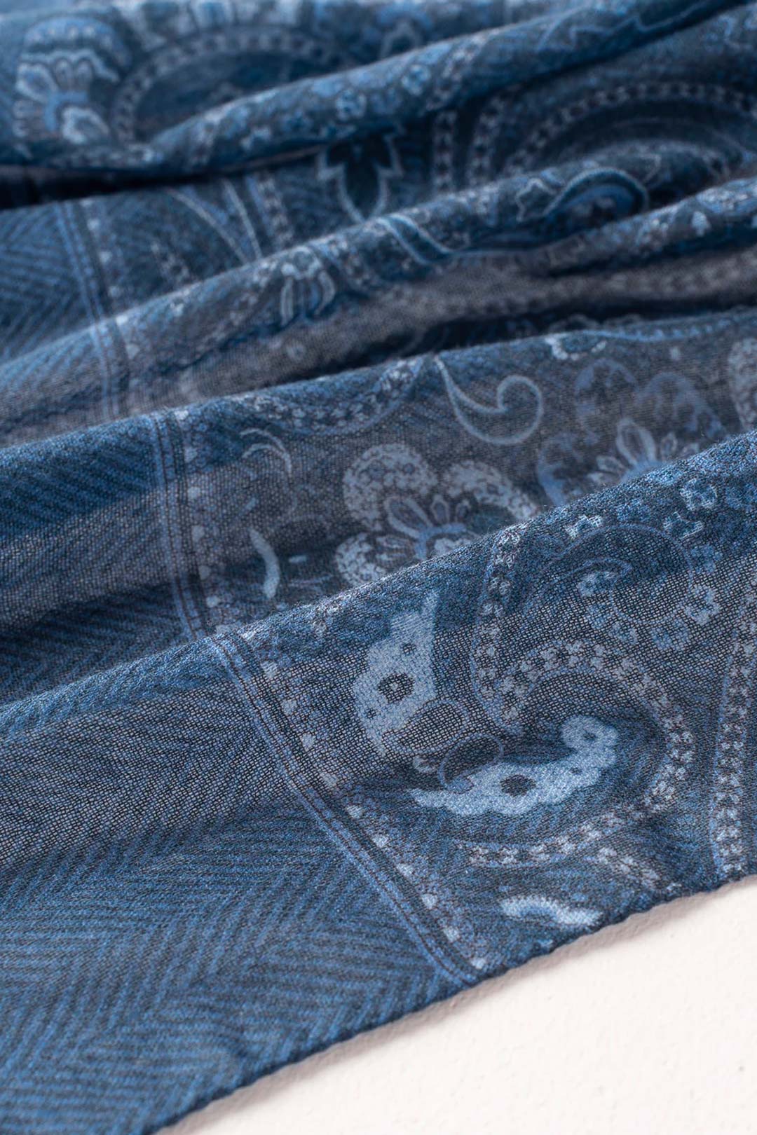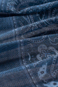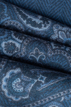 Navy Blue Paisley Herringbone Wool Silk Scarf