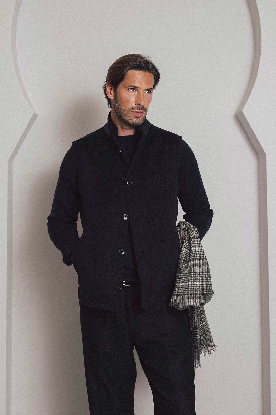 Soft by nature, structured by design. The Quilted Vest in Loro Piana baby camel hair brings quiet warmth to layered dressing. A suede-collared neckline, discreet pockets, and hand-finished details define its measured simplicity.