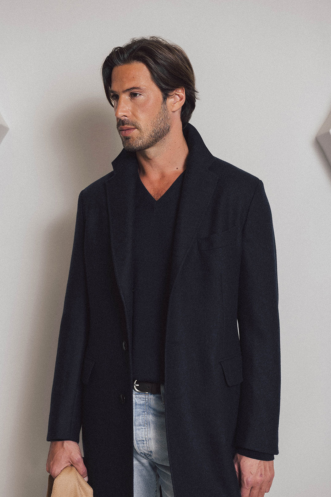 Our single-breasted coat offers a contemporary interpretation of timeless tailoring. Cut from a dark blue double-face...