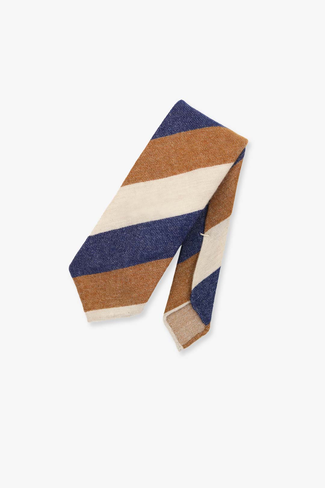 Navy Nougat Beige Block Stripe Cashmere Tie