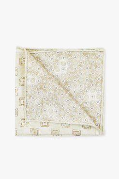 This refined pocket square is crafted in pearl grey with a light blue reverse. Finished with a hand-rolled edge and contrasting blue medallion print — a quiet detail that speaks volumes.
