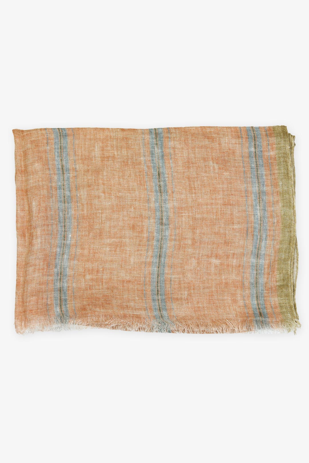 Lightweight and breathable, the Peach Blue Stripe Scarf is crafted from pure linen for effortless summer dressing. So...
